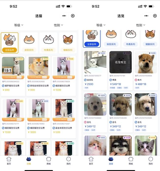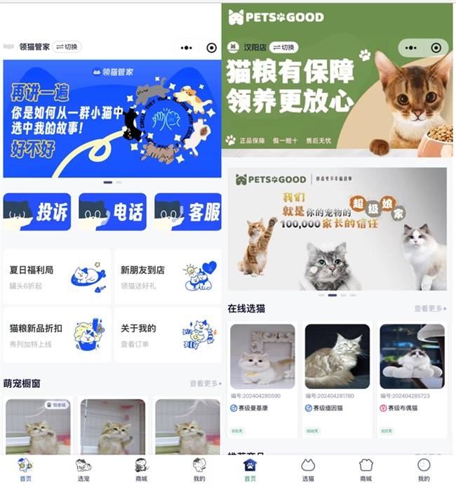 可支持活體展示,可以讓消費(fèi)者通過小程序,在線選貓預(yù)定: