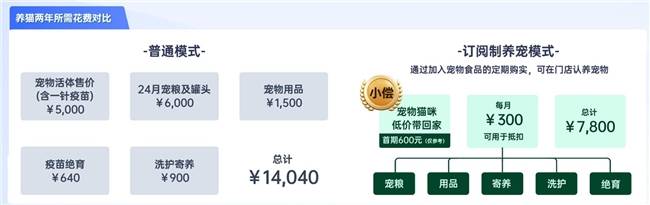 領(lǐng)貓管家支持寵糧月付模式,寵物訂閱制玩法,可以鎖定寵主未來消費(fèi),做寵物全生命周期的生意。